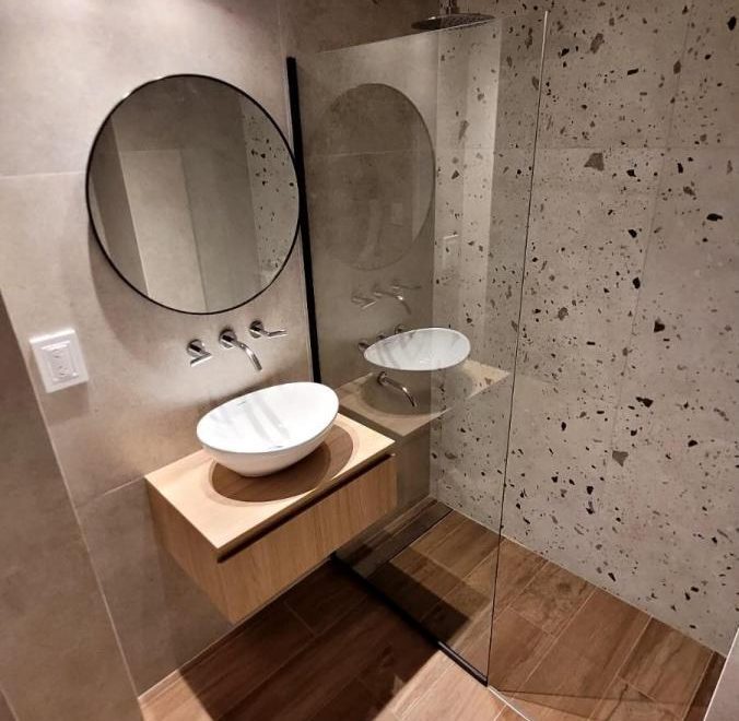 El dormitorio es muy luminoso, con placard a medida y pisos de porcelanato. Completa la propiedad un baño completo con mampara.
