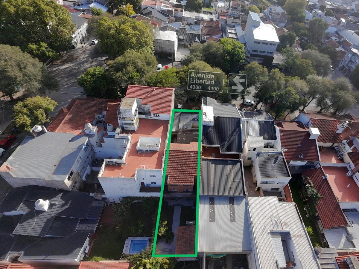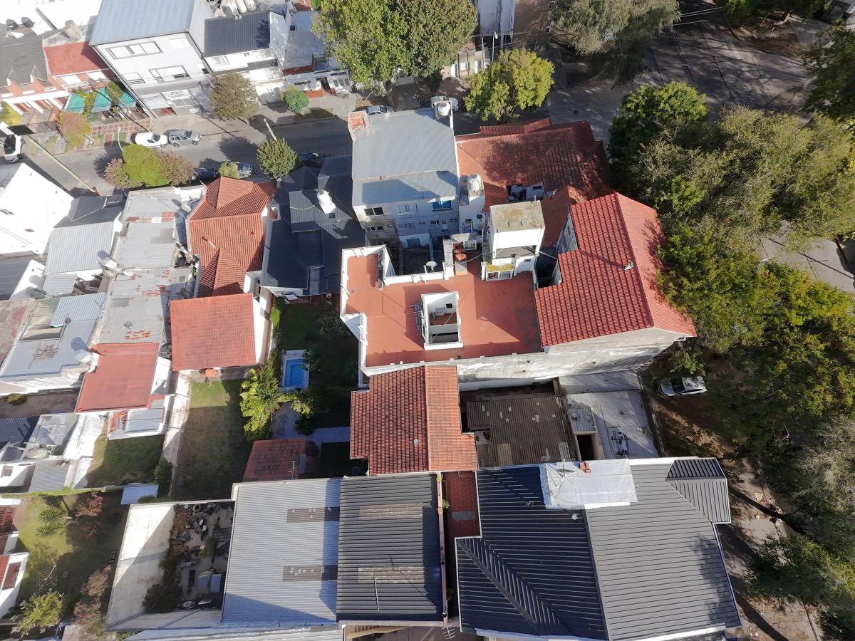 El conjunto se desarrolla sobre un lote de aproximadamente 7,80 x 34,80 m, con 270 m² cubiertos aprox. y 93 m² libres, y se compone de local comercial con 2 despachos, departamento tipo PH 2 ambientes y chalet principal en 3 plantas (6 ambientes), parque y quincho.