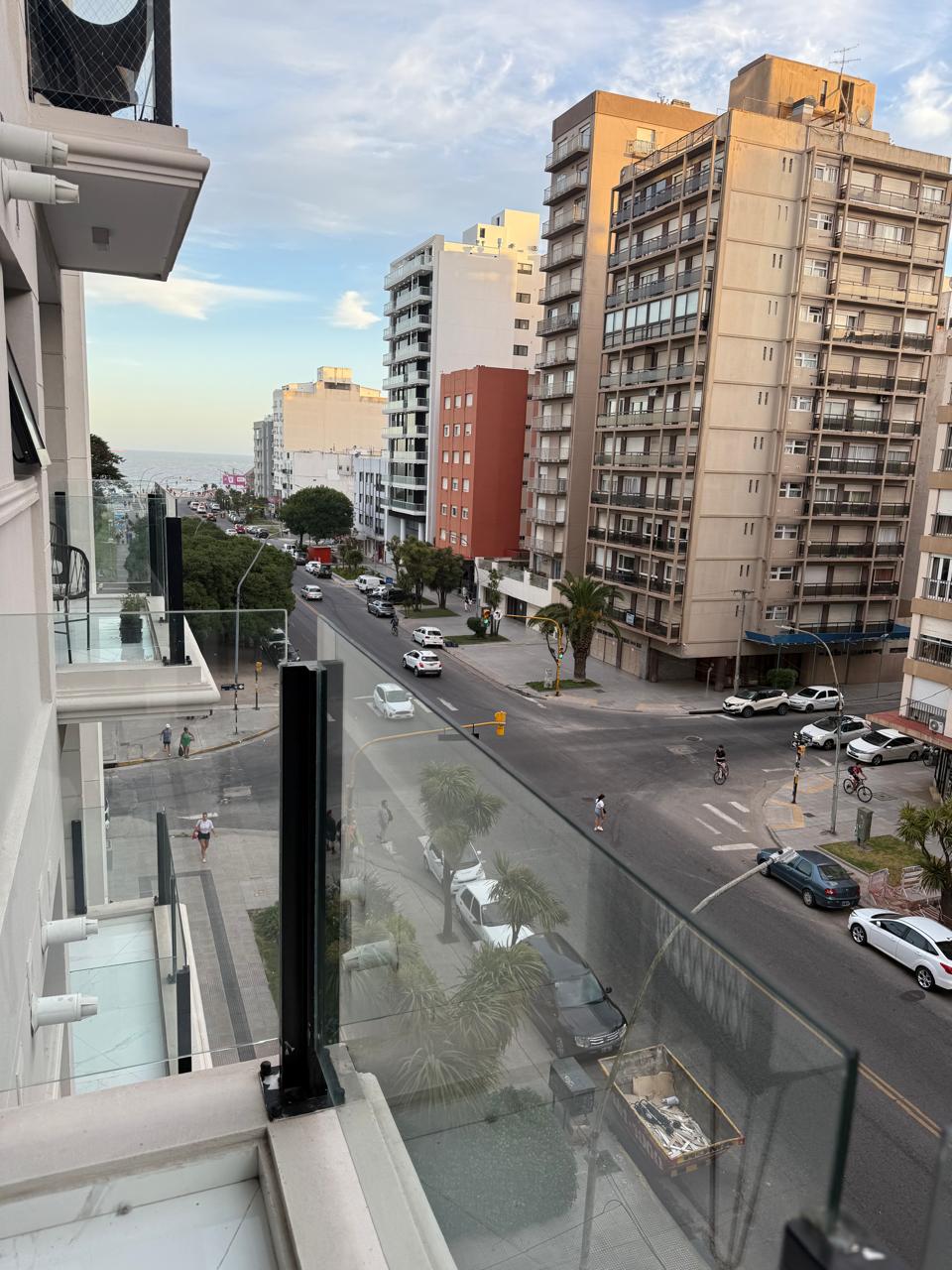 Al ingresar, encontramos un amplio living-comedor con cocina integrada, totalmente equipada, con salida a un balcón al frente con vista al mar y a Plaza España, ideal para disfrutar del aire libre y del entorno privilegiado.